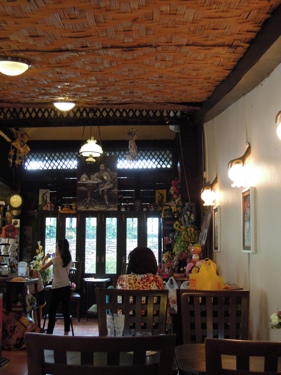 お店で飼われている犬と猫が店内でおとなしく座っていて(室内ペット)、これもタイでは珍しい光景でした。お客さんの顔が思わずほころんでしまいます。- 旅行時期