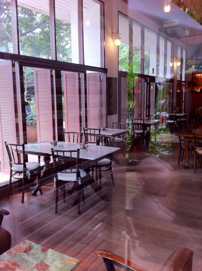 サラデーン通りから路地に入った閑静な一画で見つけたカフェです。テラス席も中のテーブル席もいい雰囲気を出していました。