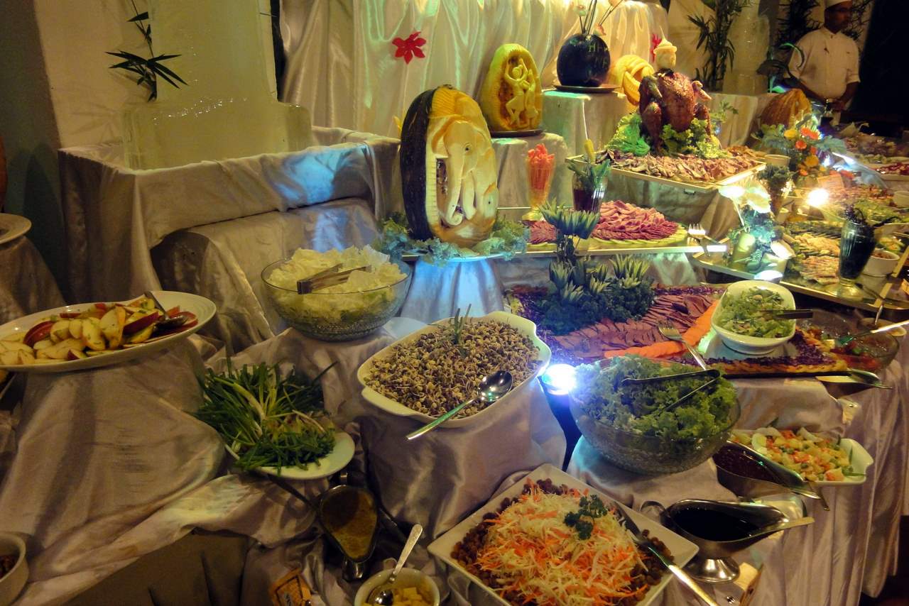 ちょうど大晦日の夜から泊まったので夕食はガラディナー。(ツアー料金とは別途に特別料金がかかります)生バンドが入り、品数が多く、目の前でいくつもの肉をローストしたり、シーフードを蒸したりして、楽しくおいしい食事でした。翌日はお正月の特別朝食で、スリランカのお祝いの席の料理も多く出ました。西洋料理も多数ありましたので、口に合わない時も大丈夫です。