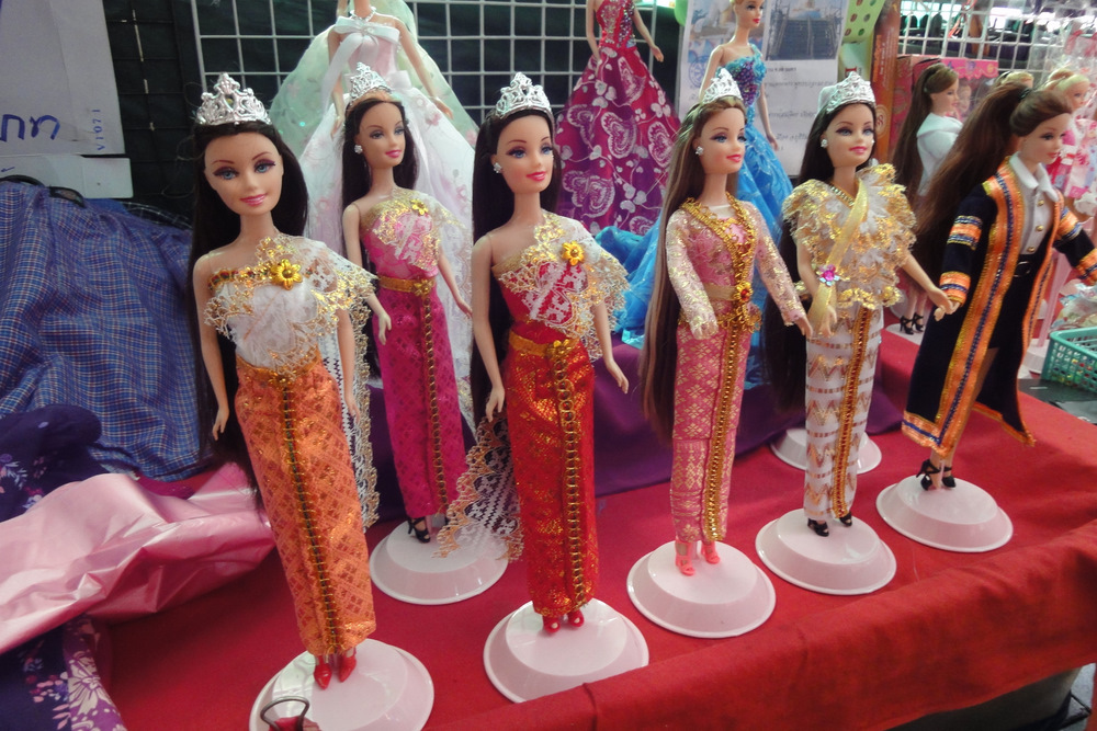 思いがけずチャイナタウンのChina Worldというショッピングモール前の露店で売っていました。バービーとは名乗らず、バービー似。(本家は何年か前に限定販売)着ているタイ衣装が豪華で、コレクターではない私もタイ衣装欲しさに買いました。着せ替え衣装のみでも売っていました。