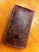 本革のケースには同じ革の端で作ったタグが付いていて、制作者と思われる名前と携帯番号が付いていました。