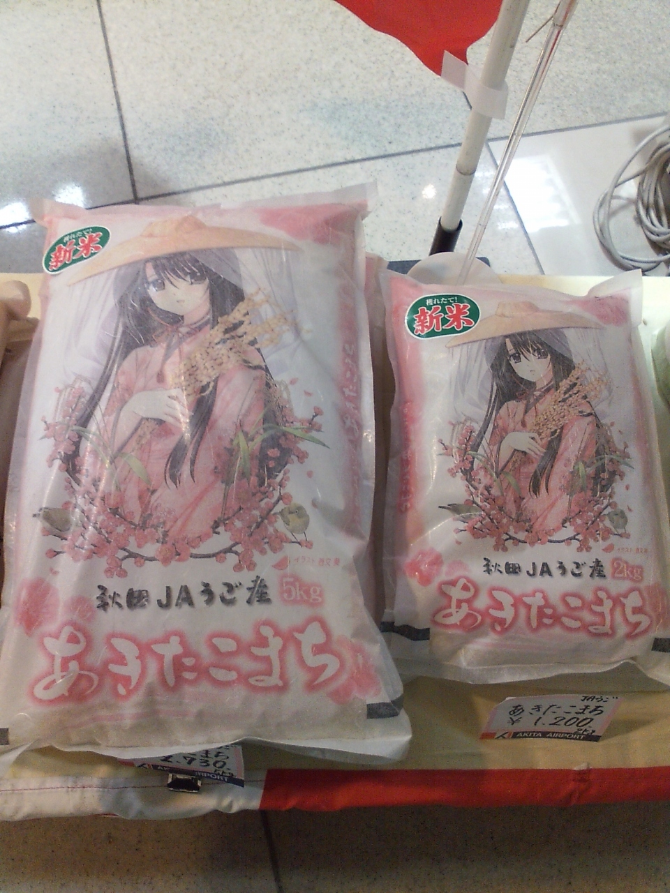 袋の絵を萌え系にしたら売れたという、秋田こまちも売ってました☆- 旅行時期