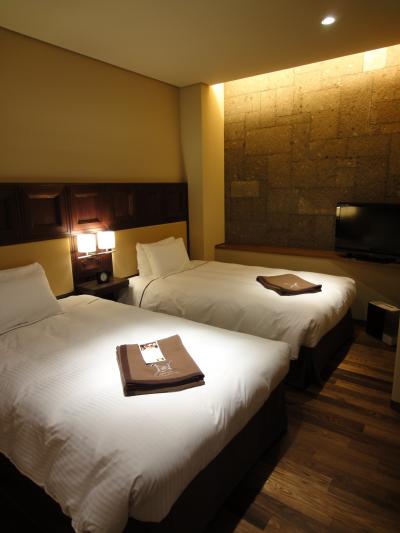 お部屋は普通のビジネスホテルでしたが、お風呂がタイル貼りで古かったのと、冷蔵庫は自分で電源のスイッチを入れないと冷えないという点が残念でした(××;)