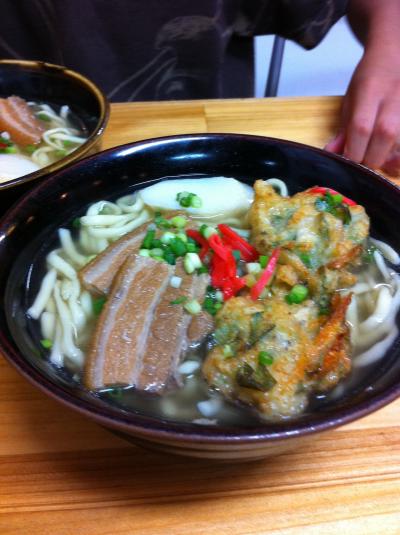 竜では勿論久米島ソバ、子供がお刺身、私はチョコット泡盛をのみましたよ-