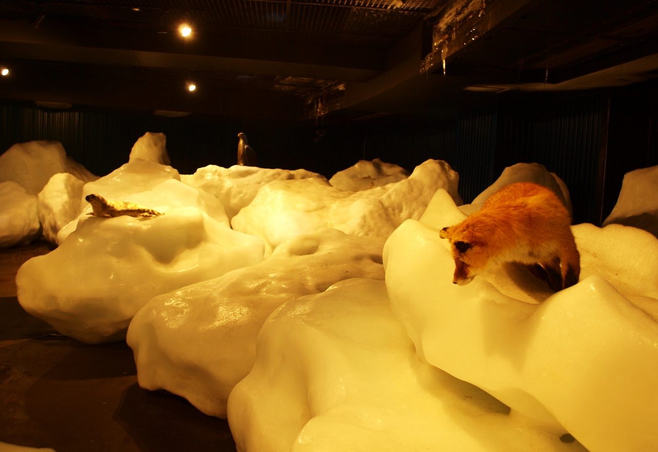 館内は知床に住む動物の生態や写真、模型などが展示されています