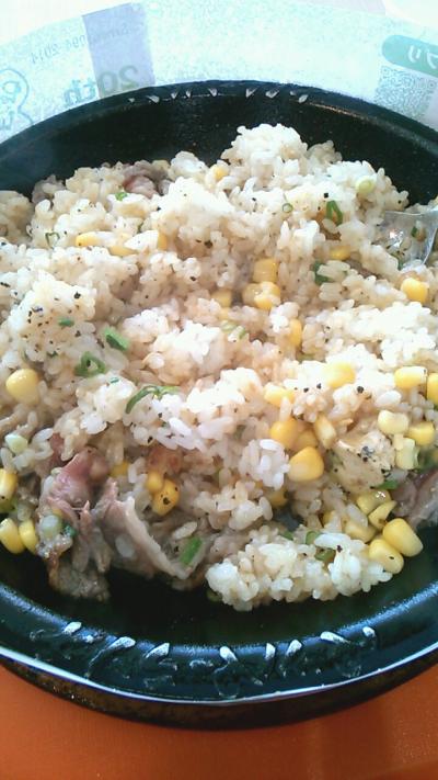 鉄板の上でライスと肉を豪快に混ぜて食べます