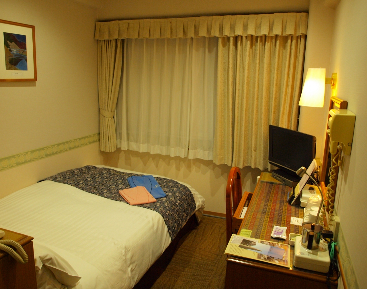 施設は古いですが、落ち着いた和室はバストイレ付でくつろぐことができました