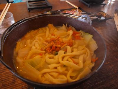 カボチャがよく溶けたスープは濃厚で、麺が太く野菜たっぷり