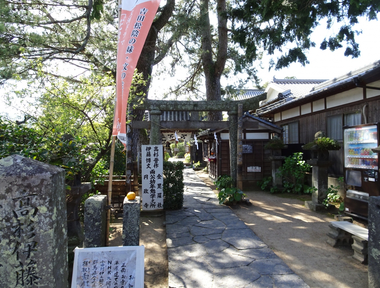 指月駐車場から城内に向かう萩藩時代に二の丸南門があった石垣付近に鎮座しています