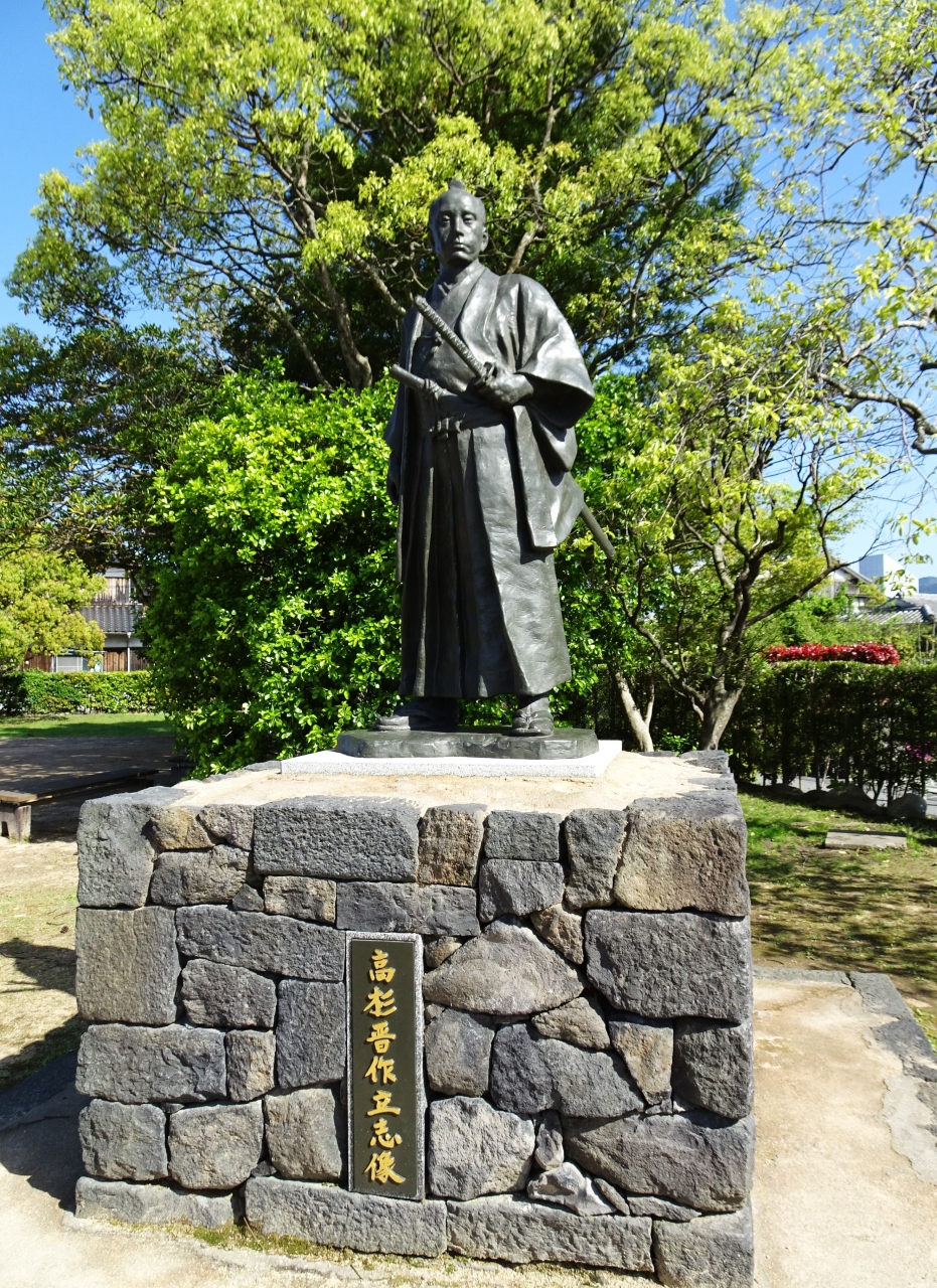 近くには晋作広場や立志像があり、ゆかりがあることがわかります