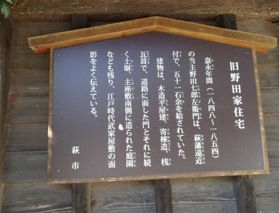 当時の当主野田七郎左衛門は、萩藩遠近付で51石余を給されていました