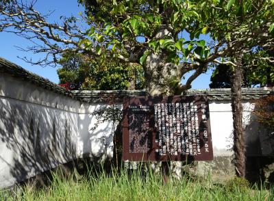 白壁にすぐ近くに記念碑と紹介文が書かれた案内板があります