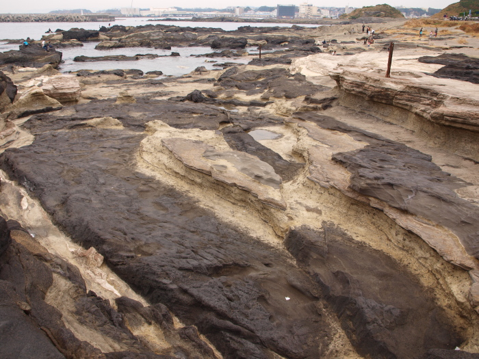 海岸は岩礁地帯になっていて凹凸が多く、とても歩きづらいです