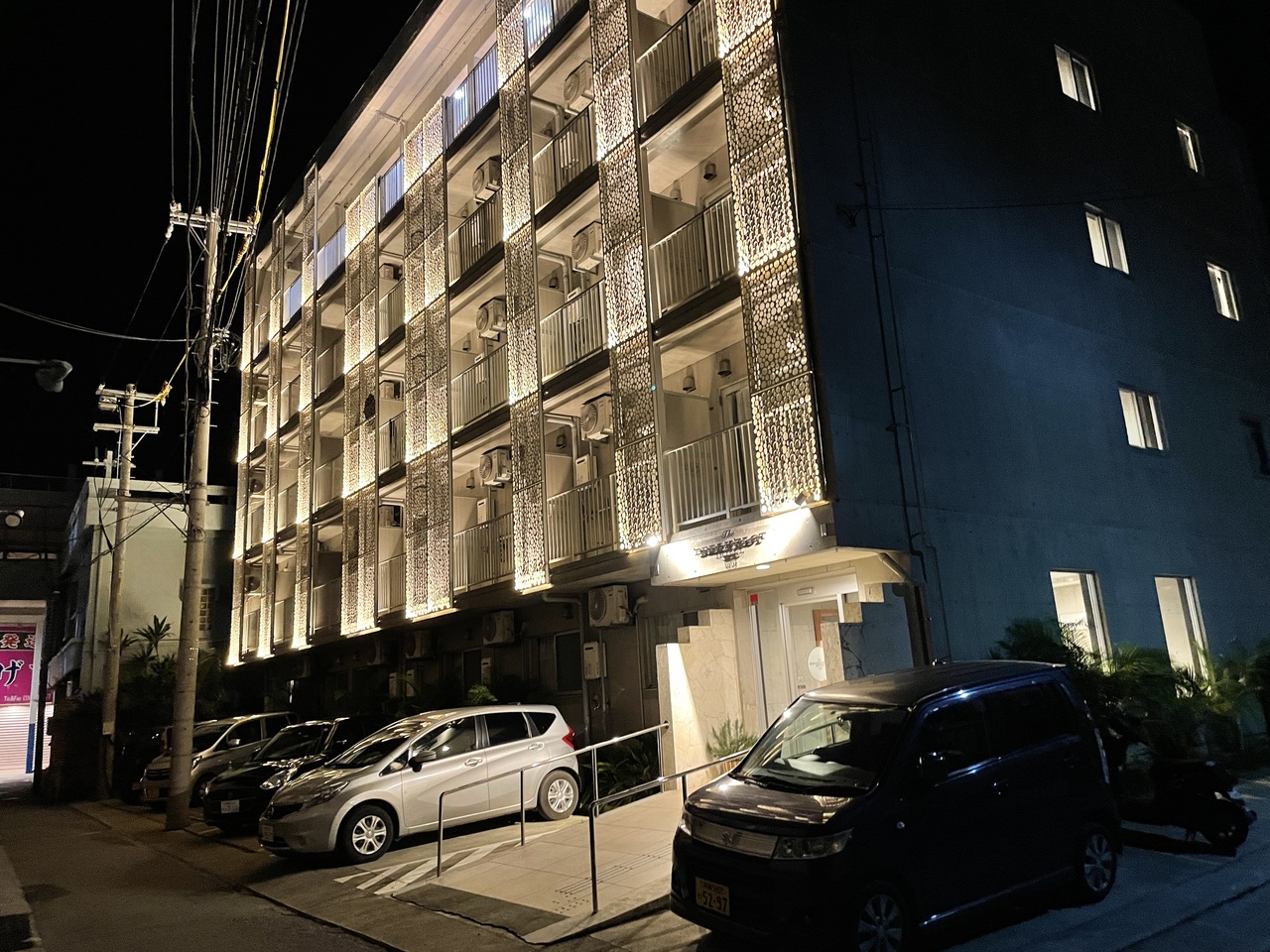 フロントがいきなり最上階にあるちょっと変わった作り。バスターミナルや離島ターミナルにも近く場所は良いし、コンクリート打ちっぱなしの部屋の内装は新しくて綺麗なのだが...