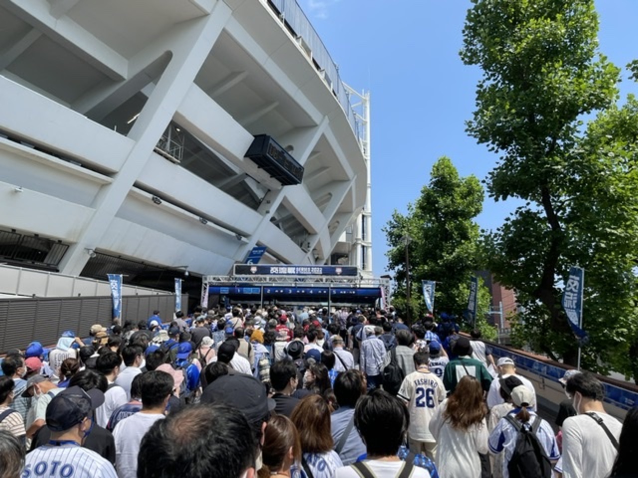 試合終了後は方向に規制が入るので、例えば3塁側のゲートから退出すると関内駅方面にしか行けません。内野は球場内は行き来できるので、利用駅によってはスタンドの中で向かう方面に移動してから退出することをお勧めします。