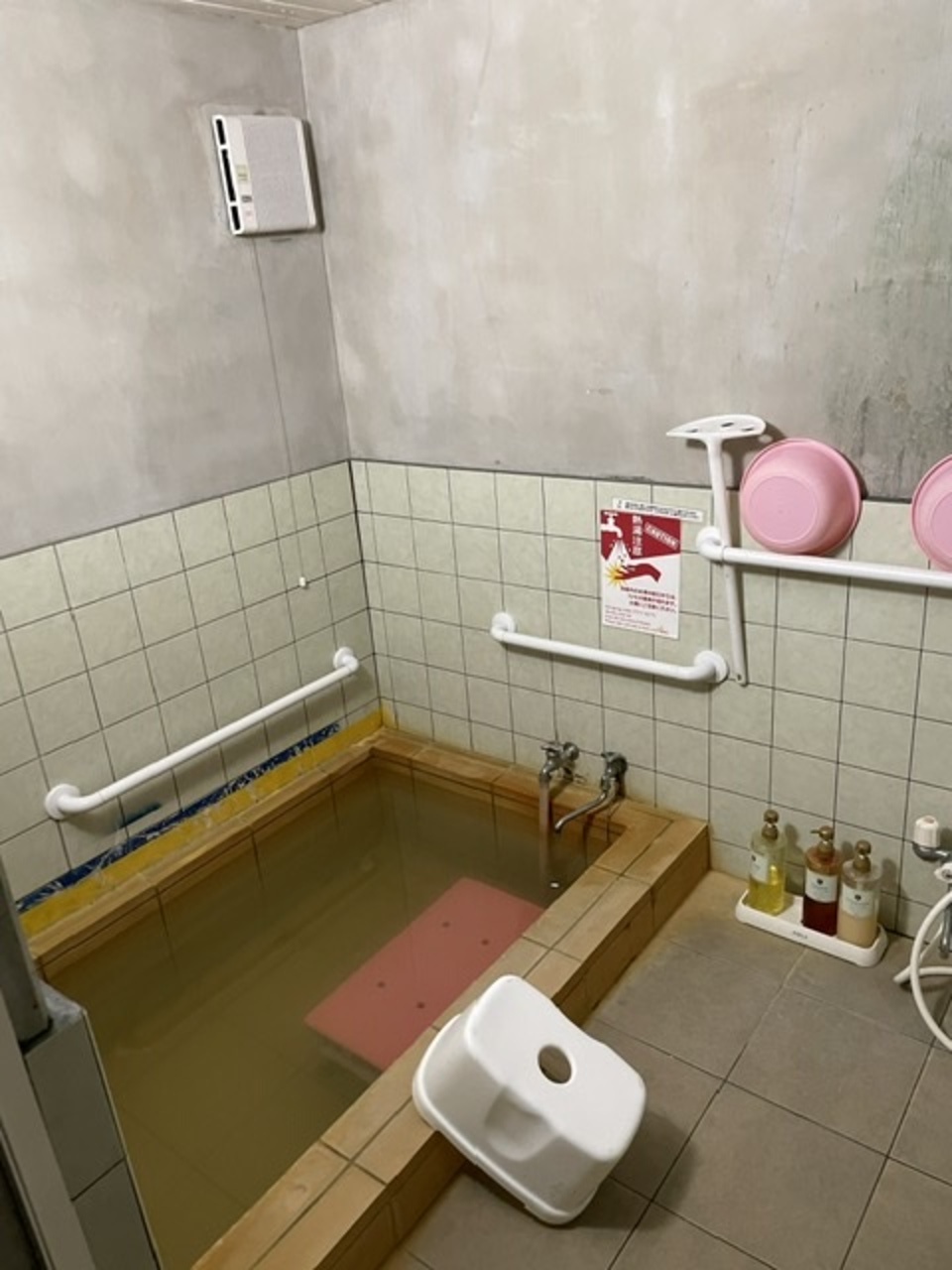 浴室は1人用の小さい浴室ですが、温泉がひかれており、ゆったりすることができます。温泉の供給が0:00-5:00まで止まってしまうので、それ以外の時間ならいつでも入れます。