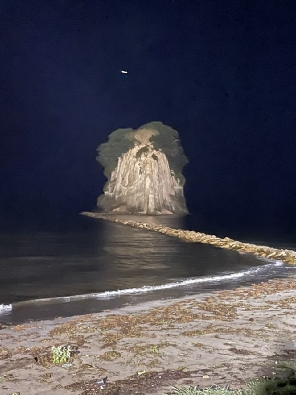 観光地として名高い見附島の真前にあり、夜のライトアップも気軽に見に行くことができます。