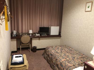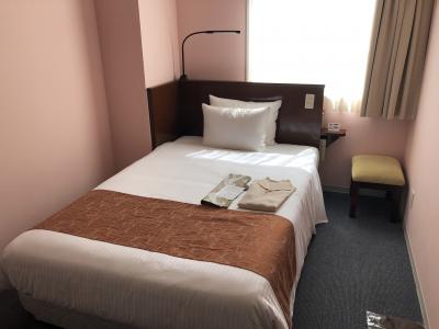 愚痴はこの辺にして、宿そのものとしては部屋はビジネスホテルとしては広く、居住性は良いのですが、ベッドが柔らかすぎて起きたとき腰に疲労感が出るレベル。ユニットバスは狭すぎで、これが温泉を使えないことと相まって不満感を増幅してくれます。