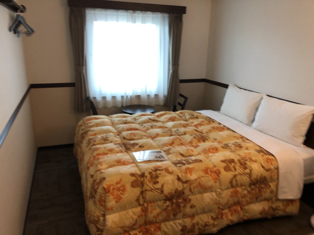 ベッドはダブルに近いので寝っ転がって仕舞えば狭苦しさを感じるわけでは有りませんし、部屋自体は清潔ですけどね。