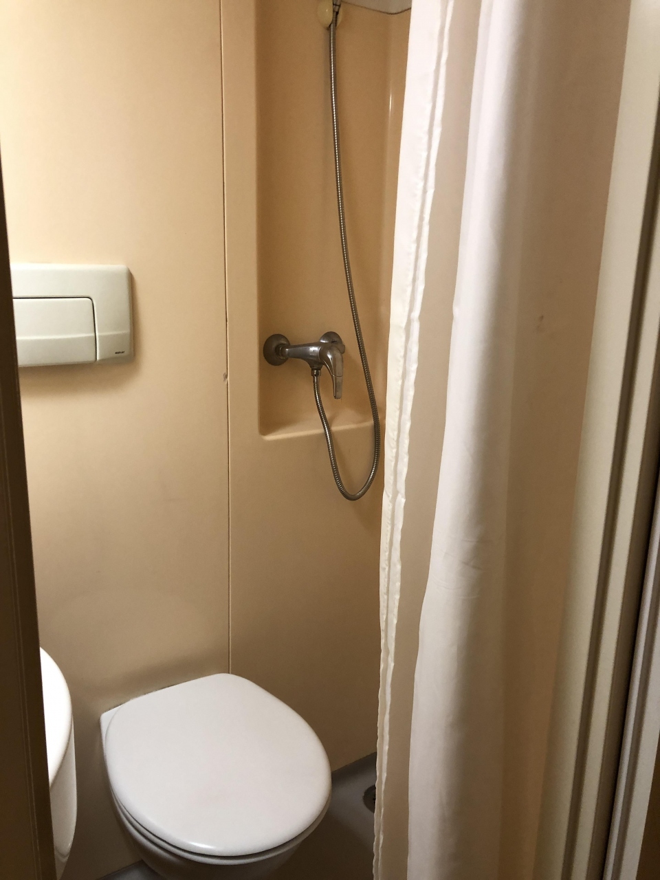 ただし客室の表示のセミプライベートバスルームというのを客室内にあるものと勘違いし真下が、実際はシャワールームとトイレがセットになった個室が廊下に並んでいるタイプのことを指して「セミプライベートバスルーム」という意味でした。