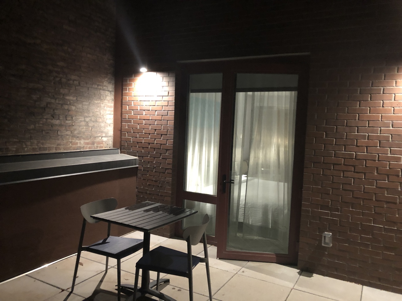 さらに部屋は2階で眺望ゼロだけどベッドと壁際にテーブルだけがデン!とあるホテルが多い中、テーブル付きの小型ソファみたいなのがあり、これがなかなか居心地が良かったです。さらにテラスも。この時期はいらないけど夏なんかは良いかも。
