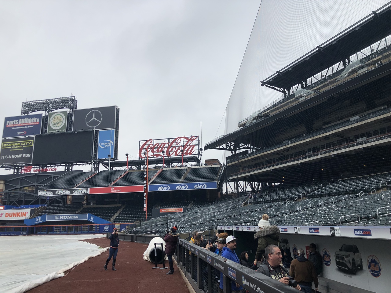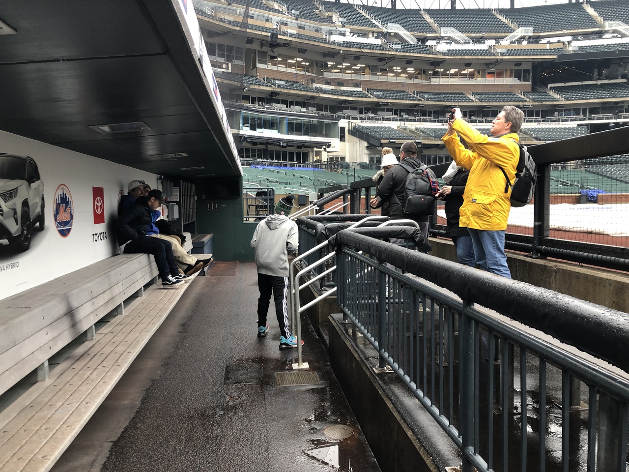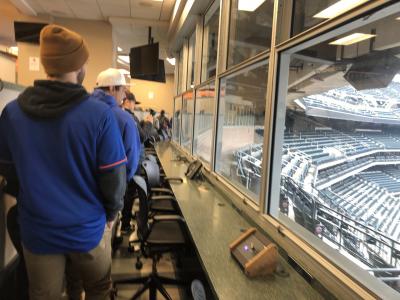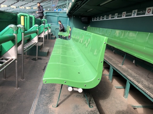 集合して、まずはスタンド下のブルペン、ビジターチーム側のロッカールーム、ベンチ裏の鏡部屋、ベンチからファウルグランドだけどグランドに出て雰囲気を味わうことができます。