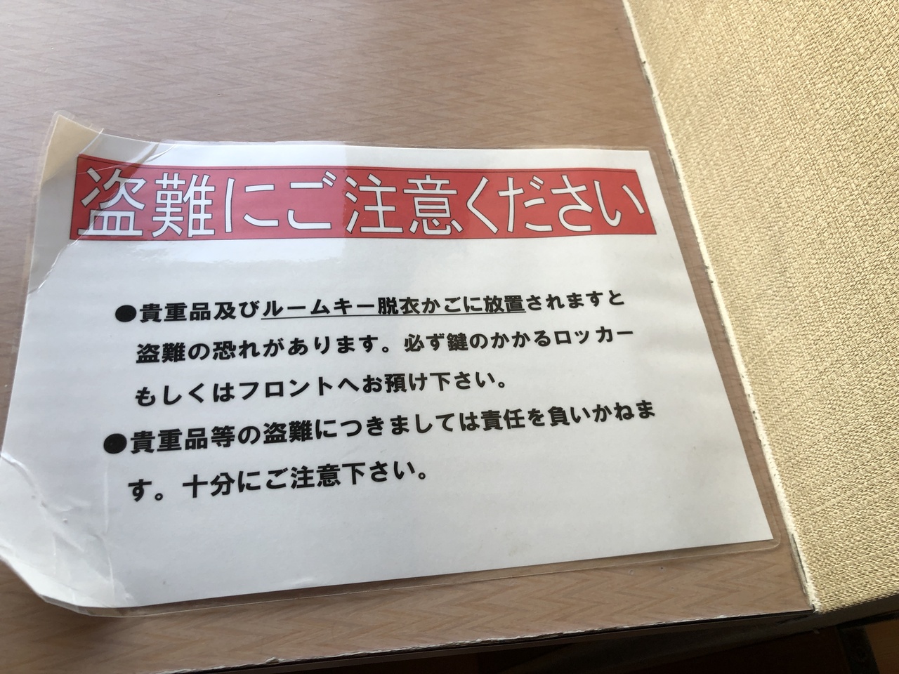 おまけに脱衣所には鍵は鍵付きロッカーに、、、と書いておいてロッカーないし。神経質な人は部屋を出る→フロントに鍵を預ける→入浴→鍵を取りにフロントへとしないといけないのかもしれません。- 旅行時期