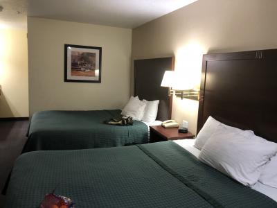 バッド他寝具も私好みでゆっくり寝られました。無量の朝食はアメリカの(良い方の)典型的モーテル風でしたが、ちょっと人に対して会場のキャパが小さく、混雑していたのはややマイナス。値段次第ですがまた来るとき使っても良い、そんなホテルでした。- 旅行時期