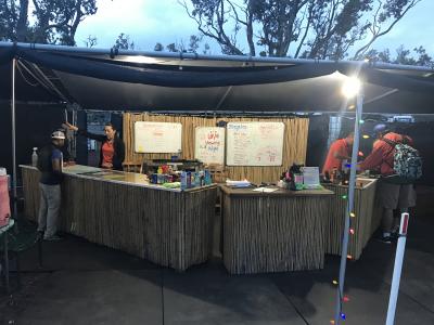 出発はアメリカですので国際線と区別無いため、国内線ターミナルで行われます。ただしこちらもターミナルと言っても屋根があるだけのオープンスポットなので雨や風逆に暑いときは辛い環境です。