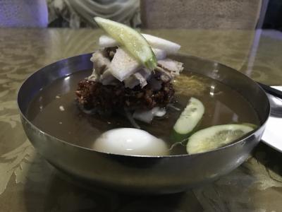 古くからありかつプノンペンでは一番有名な北レス。ショーは19:30から始まった。他の北レスのと比べるとショーはハイレベルだと思う。冷麺を看板にしているので冷麺と豚足を食した。