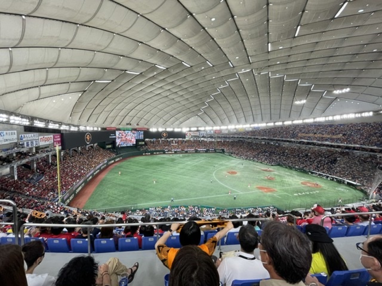 日本初のドーム球場、ジャイアンツの本拠地として有名。空気圧をかけて膜の天井を押し上げているので、退場時回転ドアでない扉から出ると風圧で押し出されるようになるのが見ものです。