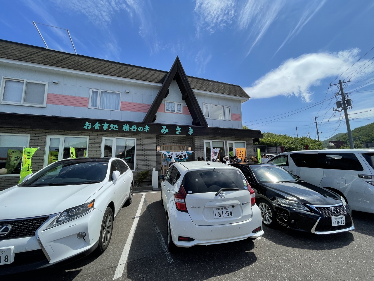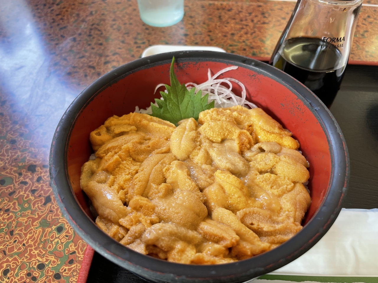 積丹でウニのシーズンにうに丼を提供するお店はどこも行列ができますが、ここもその一つ。朝一番限定のうに丼はそれこそ朝一に行かないと食べられないですが、普通の紫ウニのうに丼なら朝札幌で手も間に合います。