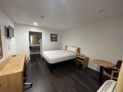 部屋は冷蔵庫は有りましたが、コーヒーマシン、レンジはなく、値段通りな内容。とはいえ、寝る分には文句はなく、近くにはショッピングセンターもあり、ラスベガス方面やヨセミテ方面へのゲートウェイになる立地なので、車を借りていてとにかく安く済ませる向きには良いです。3階建ですが、2階建のモーテルにはエレベーターがないことが多いので、下手に2階建のモーテルの2階になるよりは楽でした。- 旅行時期
