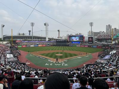 芝天然芝で美しく、割合グランドが近く感じられます。勝った試合の後はミラーボールタイムと称しダンスイベントが行われていました。帰宅客の分散退場の意味もあると思います。勝った試合には日本でいうエキサイトシートの観客が選手とハイタッチする権利があってこれが結構な人数ですので、韓国プロ野球にありがちな、試合終わったらあっさり撤収ということもなく余韻に浸れます。