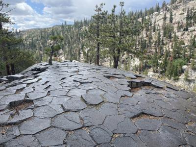 シェラネバダ山脈東側、スキーリゾートのマンモスレイクスのさらに山を登った先にあります。細かく整った柱状節理が見られるので柱状節理ファン必見です。ナショナルモニュメントに指定され、国立公園局が管理しています。アクセス道路が整備されているのですが、道が狭く駐車場スペースが限られていることから、夏のピーク期には朝7時前とかその他例外以外は自家用車で乗り入れ出来ず、麓のスキーリゾートから出る有料のシャトルバスに乗らなくては行けません。