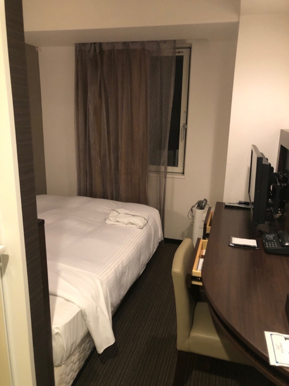 部屋は典型的ビジネスホテルではあるけどベッド、枕共に私好みで快適に泊まることができました。チェックアウトもカードを箱に投入するだけでスピーディ。