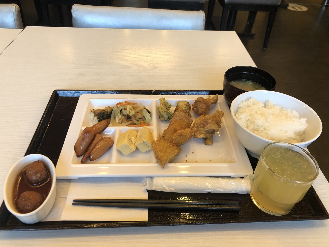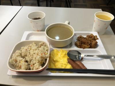 朝食もコロナの影響で弁当配布なのですが、目の前のセブンイレブンで買った方がもう少しマシと思われる内容。