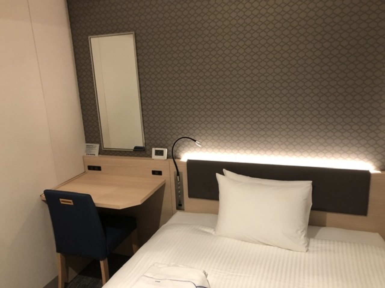 部屋はベッドがあるだけの部屋ですがビジネスホテルの割には机が広く椅子も座りやすく、居場所のスペースが確保されている感じで、快適に滞在できました。