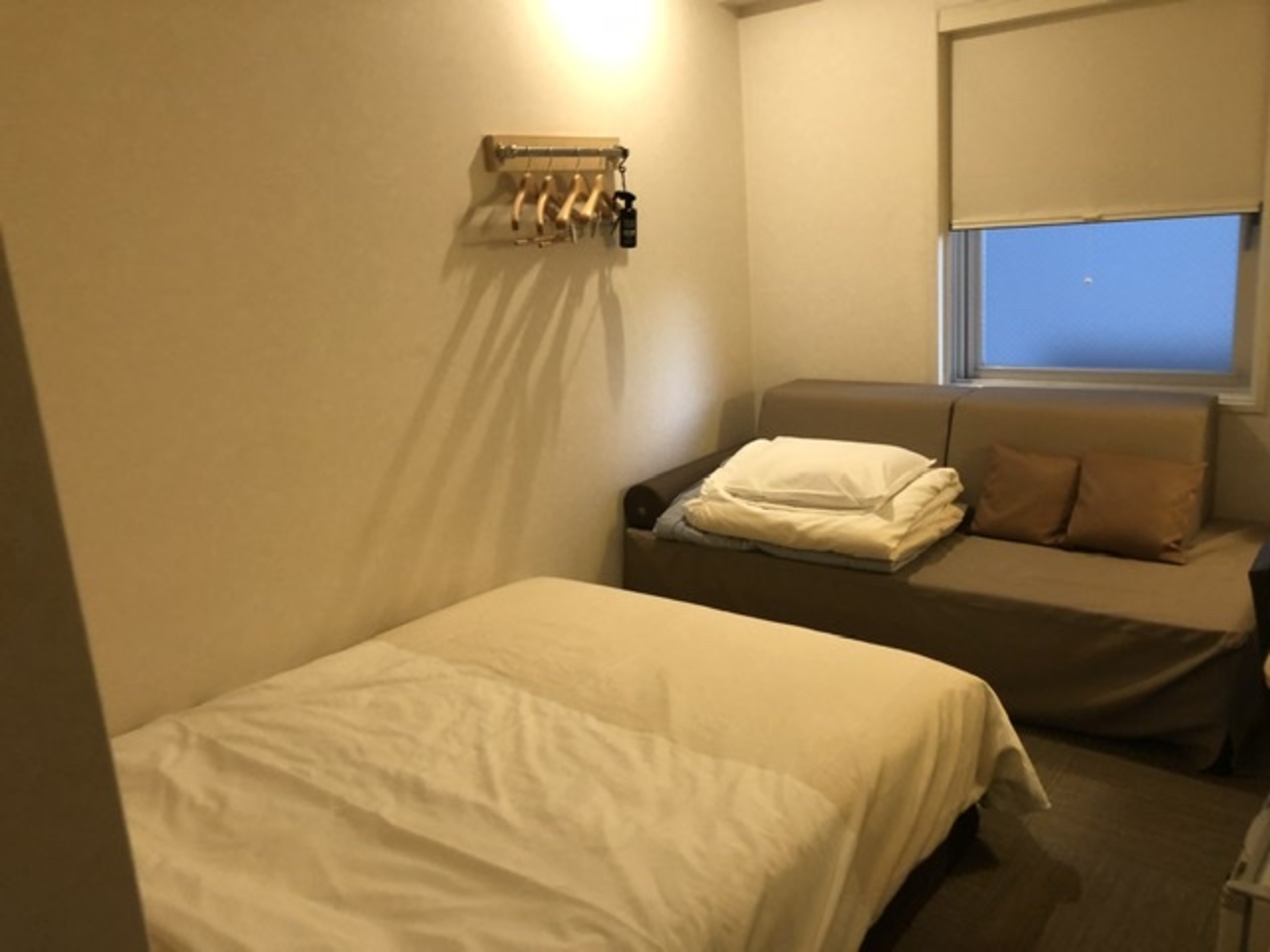 Gotoの地域共通クーポンの仕切りの関係でチャット足して上のクラスにするともらえるクーポンが増えるということもあって、ソファベッドつきの広めの部屋、といってももしベッドを展開したら立つスペースは殆どないくらいの部屋でした。