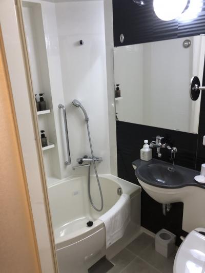 スーパーホテルは大体ライバルチェーンより高めの値段設定なので、今まで利用したことがありませんでしたが、今回はパックにつけられる中では安い部類だったので、駅から近いこともあって選択。