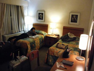 私たちが泊まった部屋は狭くてベットが2つと荷物を広げるスペースを作ってしまうといっぱいいっぱいになっちゃう部屋でした。