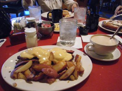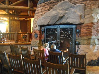 エントランスには暖炉があってロビーの逆側に食事するところがあるんですがキャストの人が跳ね回っておもしろかったですw