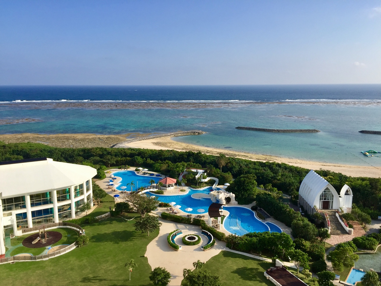 ホテル前のマエサトビーチは人工ですが充分に美しく、リゾート気分を満喫できます。また、沖縄のホテルには珍しくインドアプールがあるので、日焼けしたくないけど泳ぎたい自分にはぴったりでした。