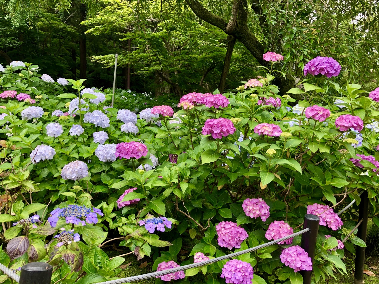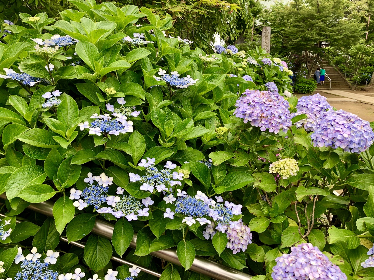 数年前に訪れた時は菖蒲園やお寺の境内全体が雑草だらけでかなり荒れており、どうしたのかと思っていましたが、その後手入れをされたようできれいになっていました。紫陽花は5万本が植えられていて、色も種類も様々な紫陽花が楽しめます。