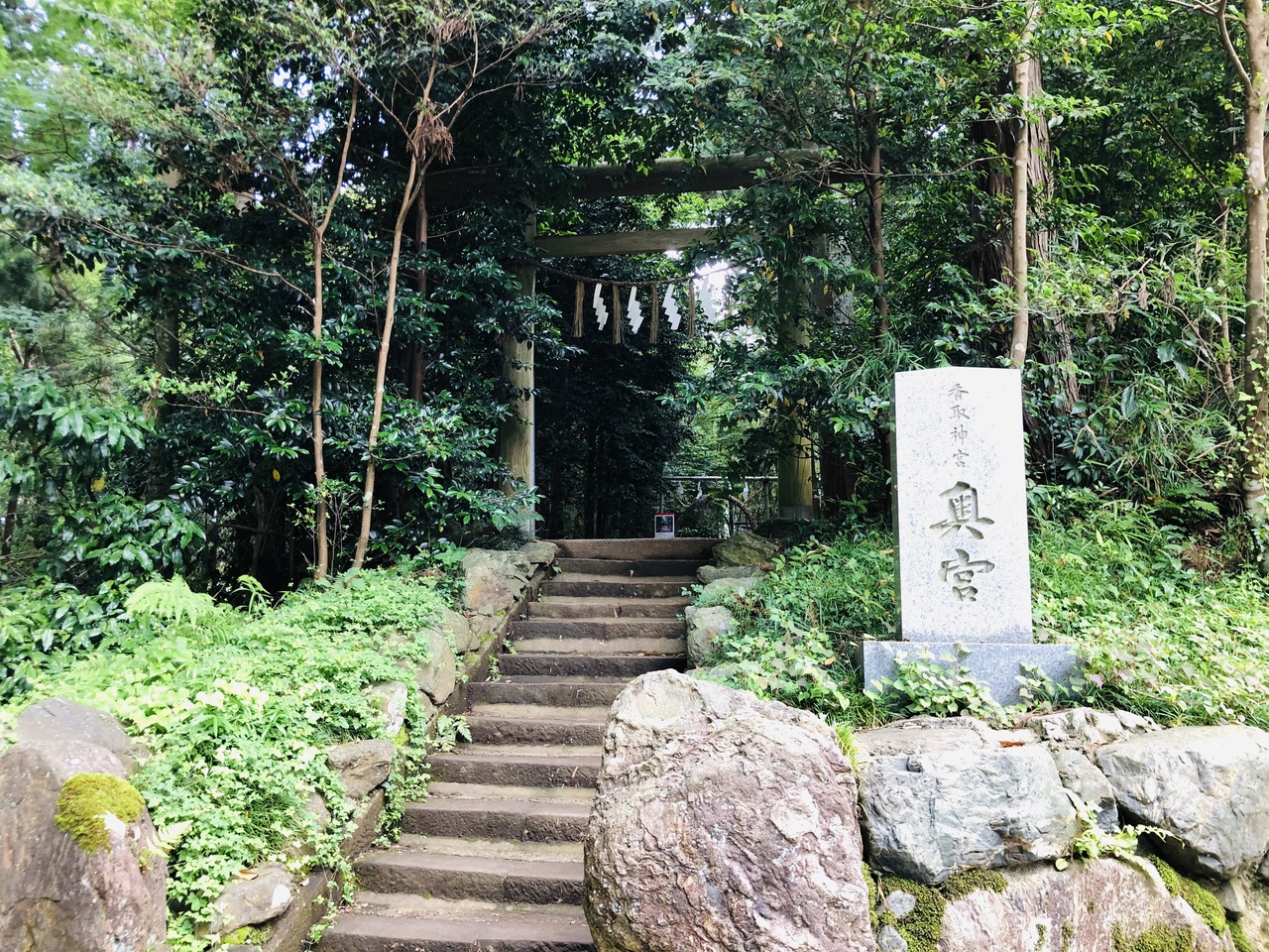 6月末でしたので、ちょうど夏越の大祓の茅の輪が設置されており、茅の輪くぐりをしてきました。拝殿で参拝後は、少し離れた奥宮へ。週末でしたので、奥宮の御朱印もいただけました。尚、要石の御朱印もあるようです。