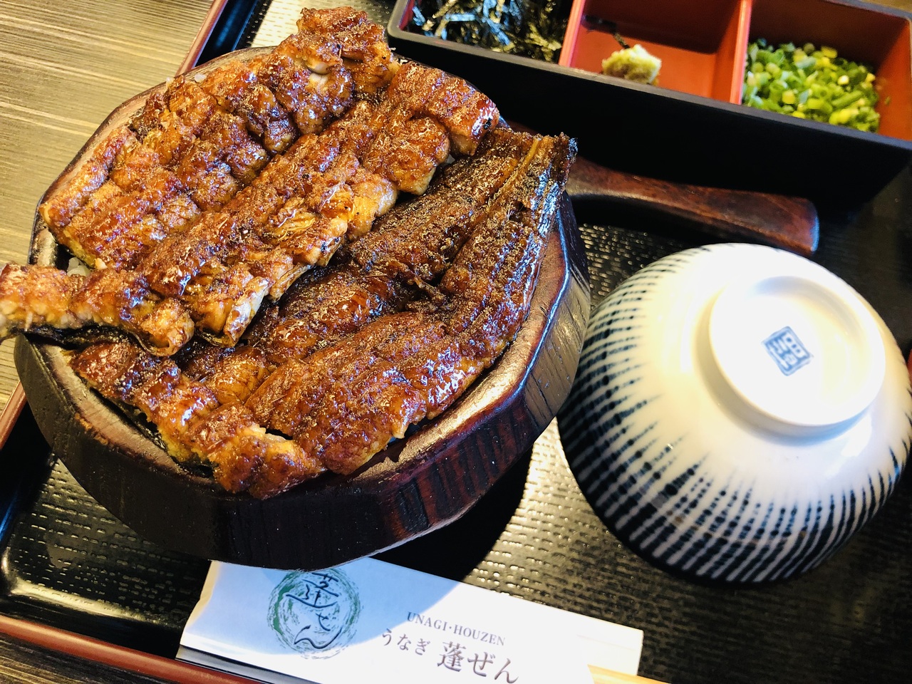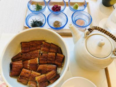 1度目はひつまぶし。本場名古屋のひつまぶしに比べると少々貧相かと思いましたが、茶碗蒸しや小鉢も付いてコースのようになっていました。