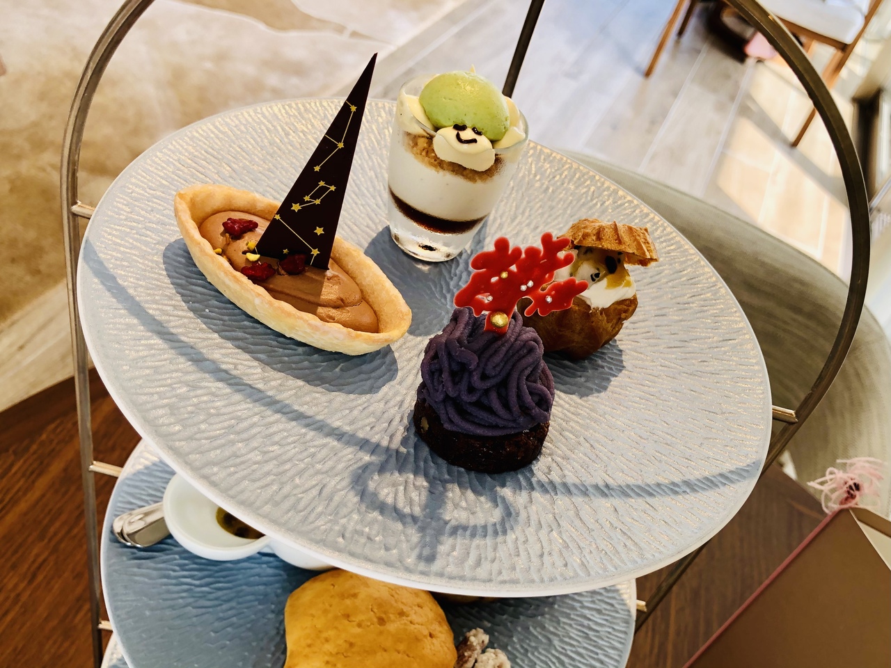 クラブルームの予約でしたので、アフタヌーンティーをいただきながらチェックイン。とても可愛らしい三段トレイで、小さなケーキ達は見た目も美しく、もちろん美味しくいただきました。