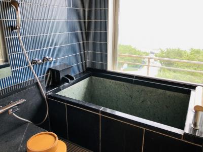 今回宿泊したのはホテル棟2階。客室の露天風呂からは太平洋が望め、広さも充分。残念ながら温泉ではありませんが、ゆっくりとお風呂を楽しめました。尚、全6室ある離れの客室露天風呂は温泉のようです。