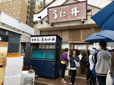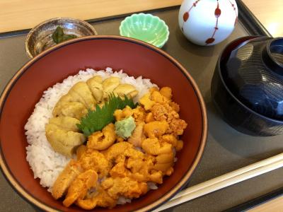 ちょうどエゾバフンウニの入荷が始まったとのことで、通常のウニ丼とエゾバフンウニの食べ比べ丼を注文。エゾバフンウニは初めて食べましたが、味が濃くて美味しかった!