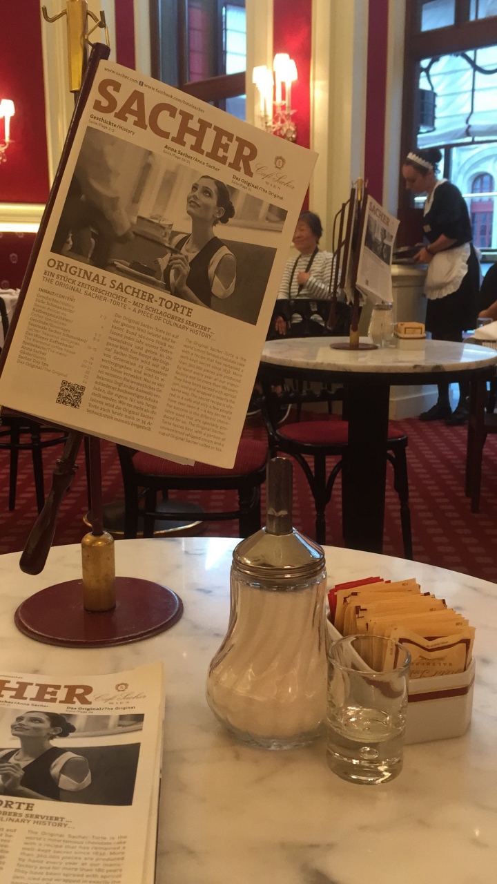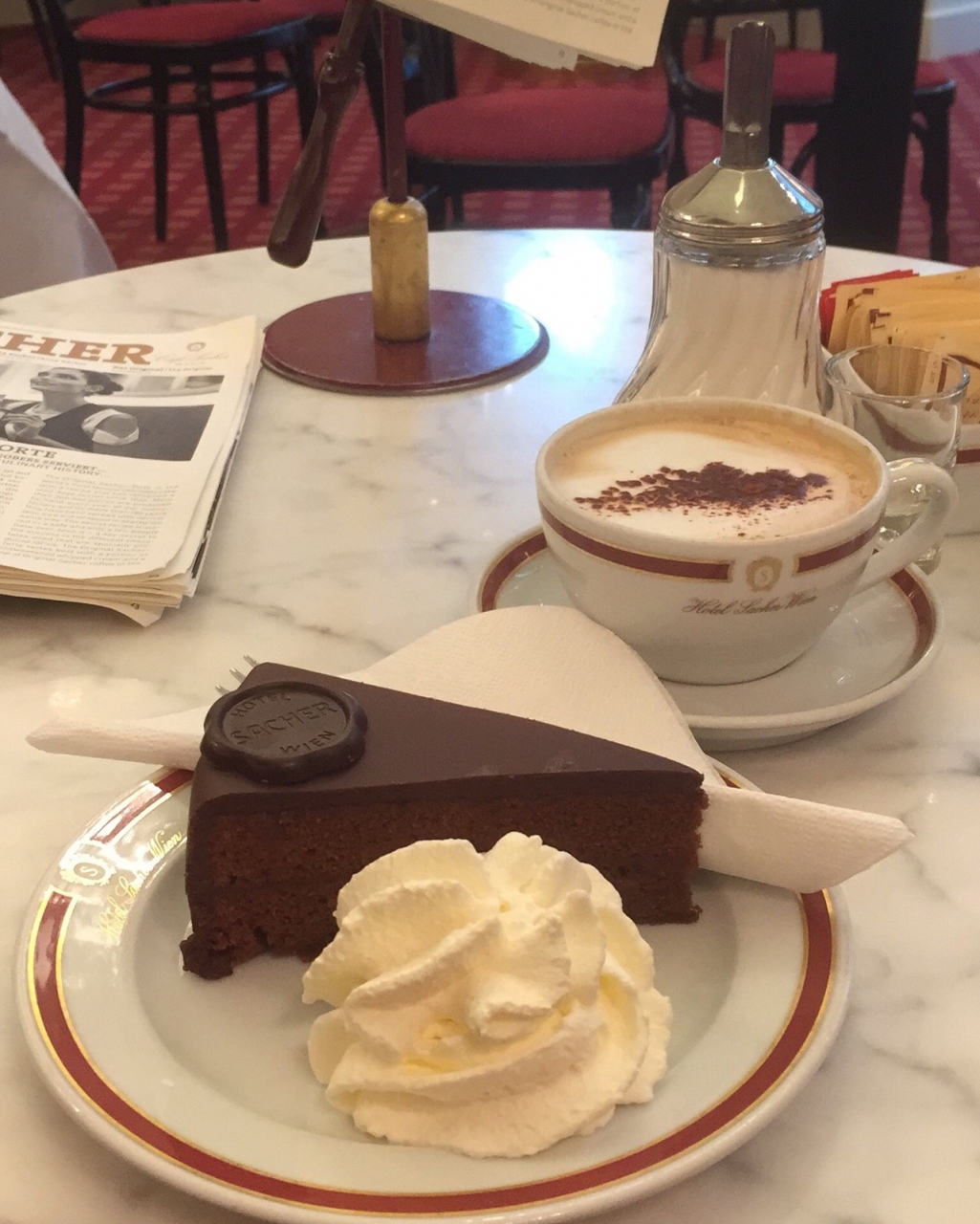 お店の方も慣れていて、『ザッハートルテ?』と向こうから聞いてくれました(笑)。ザッハートルテとカプチーノを注文。